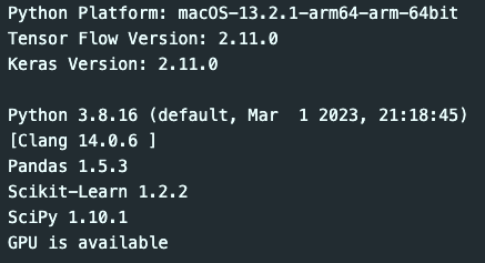 애플 실리콘은 일반적인 CPU GPU와 달라서 애플이 직접배포하는 텐서플로우 호환버전을 사용해야 작동한다.