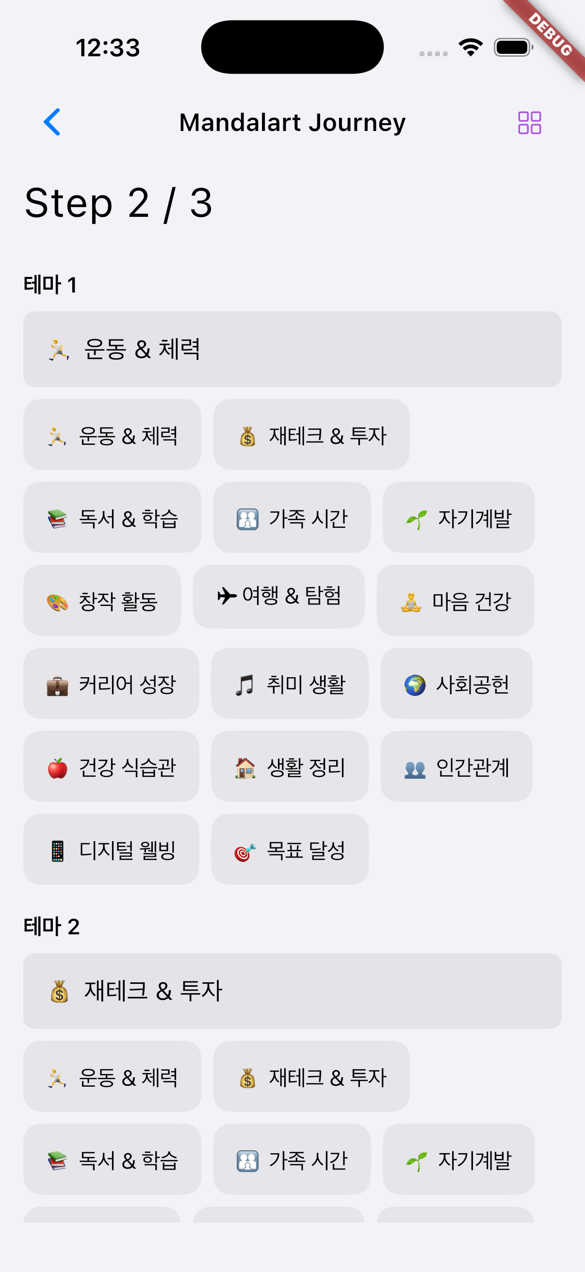 연초에 웹/앱 개발과 인프라 기반의 운용 및 TR 경험 만들기에 도전하며 Flutter를 새로 배웠지만, To-Do 앱 하나 만들다가 빌드 단계에서 포기했던 경험이 있다. 그런데 '바이브 코딩'이라는 새로운 개발 형태를 접하고 다시 도전하게 되었고, 일주일 만에 만다라트 앱을 MVP(Minimum Viable Product) 형태로 안드로이드/아이폰 빌드까지 해낼 수 있었다.