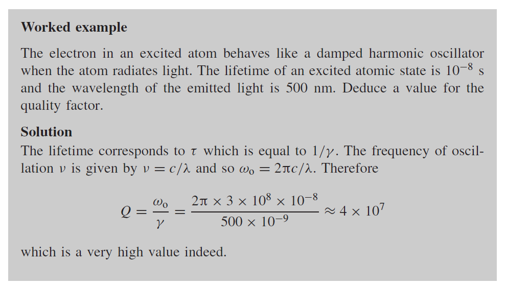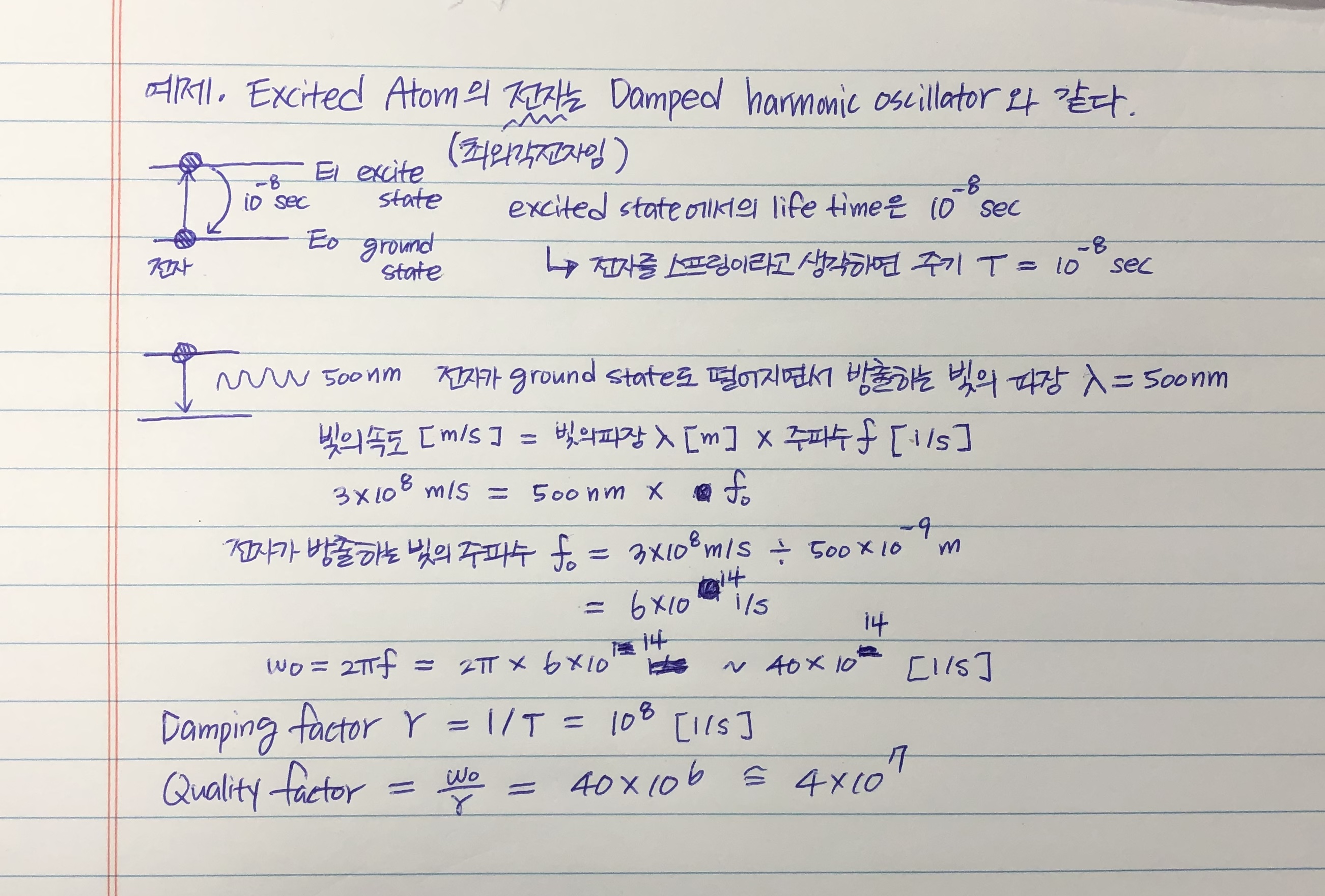 (b) 조화진동자의 총 에너지가 1/2mw^2A^2일때 quality factor를 구하라
