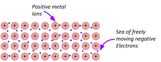 아래 사진을 보면 금속결합은 전자의 바다 위에 둥둥 떠있는 금속이온의 배열이라고 할 수 있다.