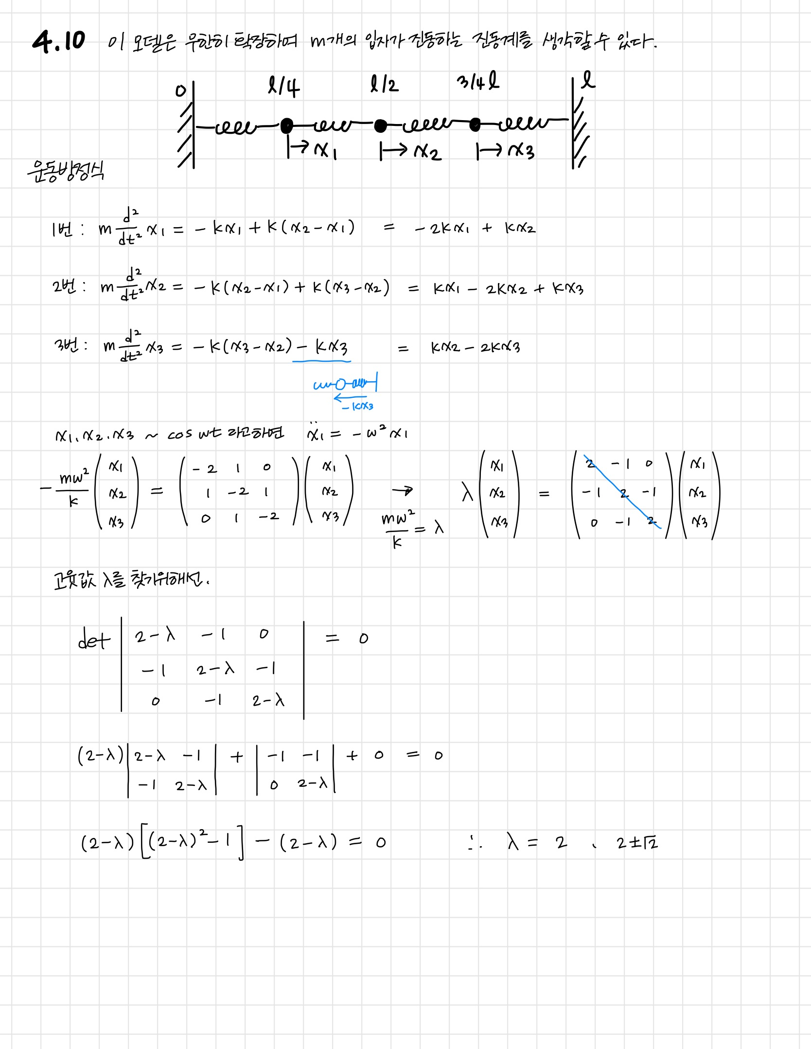 운동방정식에서 마지막 3번 진동자의 운동방정식에서 -kx3인 이유는 파란색 그림으로도 알 수 있지만