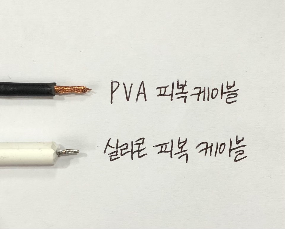 PVA 케이블은 납땜할 때 오래 가열하면 피복이 녹기도 하고 타기도 해서 이상한 냄새가 나는데 실리콘 케이블은 녹거나 타지 않았다.