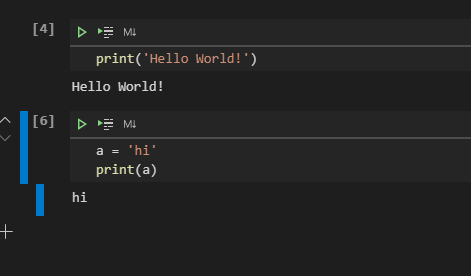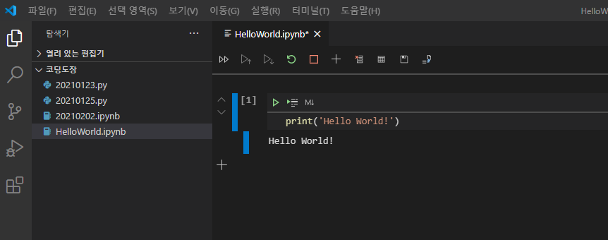 코드블록에 코드를 작성하고 위의 초록색 ▶을 클릭하면 코드실행결과가 바로 아래에 뜬다.