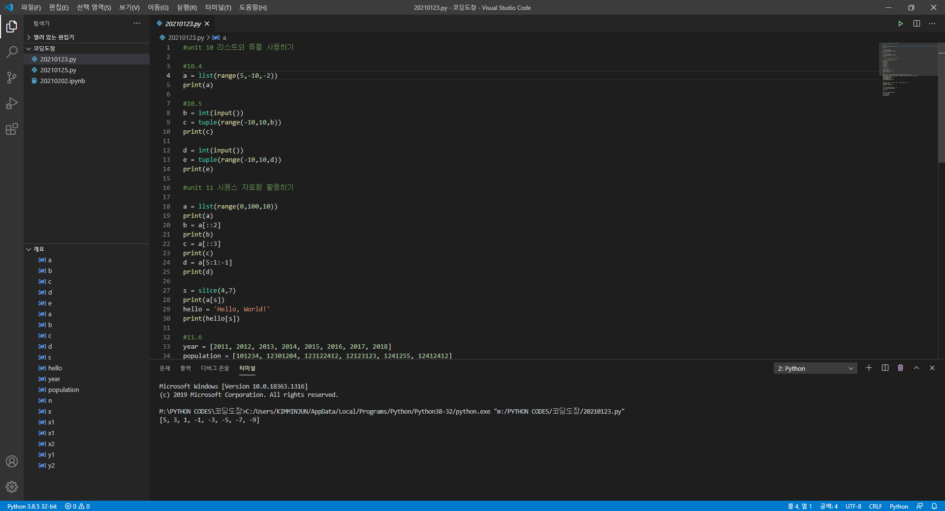 2. VSCODE에서는 파이썬을 실행하려면 파일명에 .py를 붙여야한다.