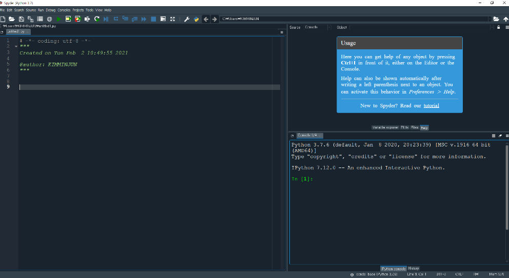 아나콘다(Spyder)는 매트랩처럼 변수나 저장된 데이터를 한 눈에 보기에 좋지만 대신에 실행되기까지 시간이 좀 걸린다.